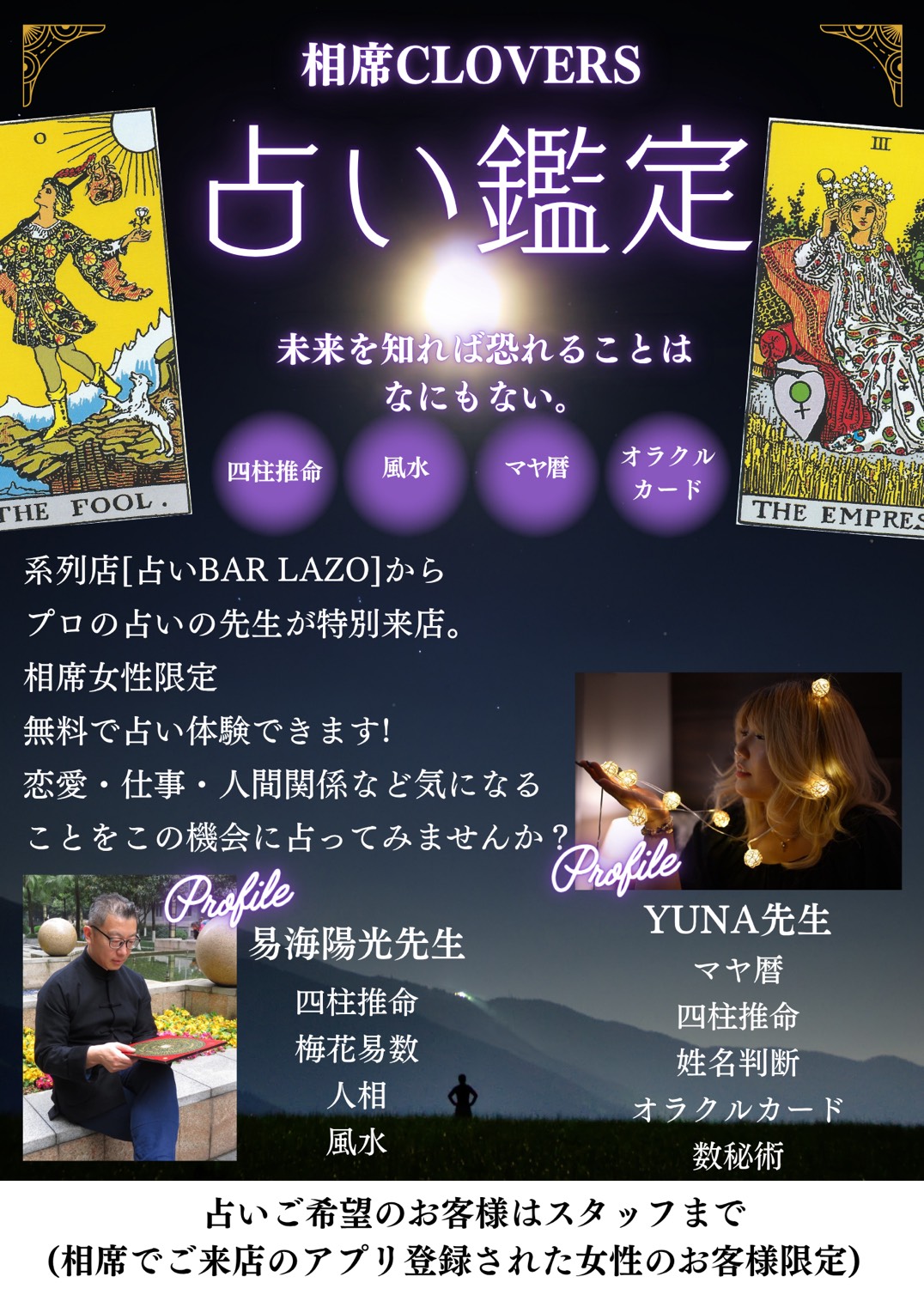 日曜〜木曜22時までの入店で相席料金半額!